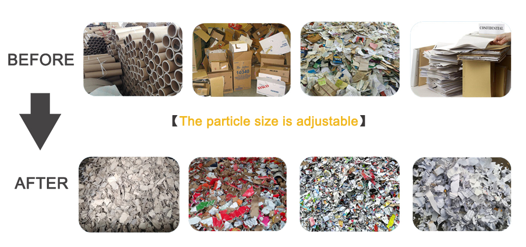 The waste paper shredder is specially developed for the waste paper recycling and processing industry, mainly used for crushing cardboard boxes, paper tubes, book paper, etc. to reduce their size, increase their packing density, facilitate transportation and subsequent processing. This device is widely used in waste paper packaging stations, packaging enterprises, and paper mills. The waste paper shredder has the characteristics of low speed, high torque, and low noise. It adopts a PLC control system and can be automatically controlled. It is equipped with start, stop, reverse, and overload automatic reverse control functions.
